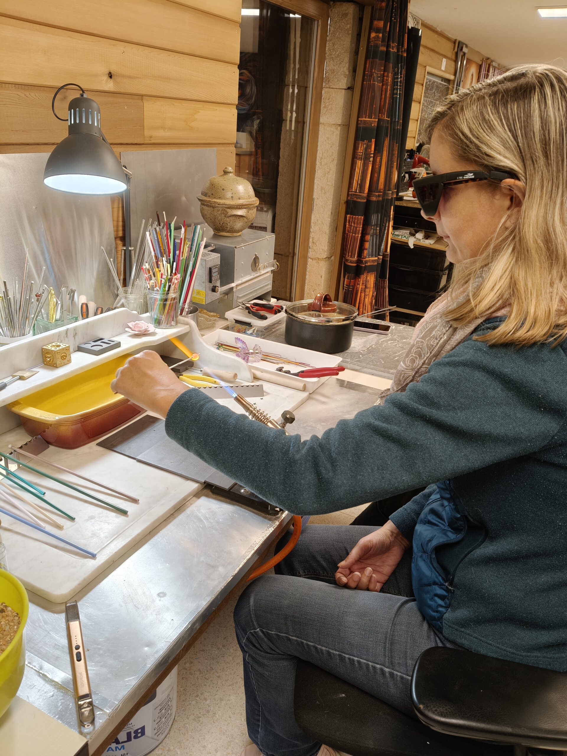 Ces savoir-faire me permettent de créer des bijoux, des fleurs en verre et des objets décoratifs, réalisés à la main, en pièces uniques ou en très petites séries.